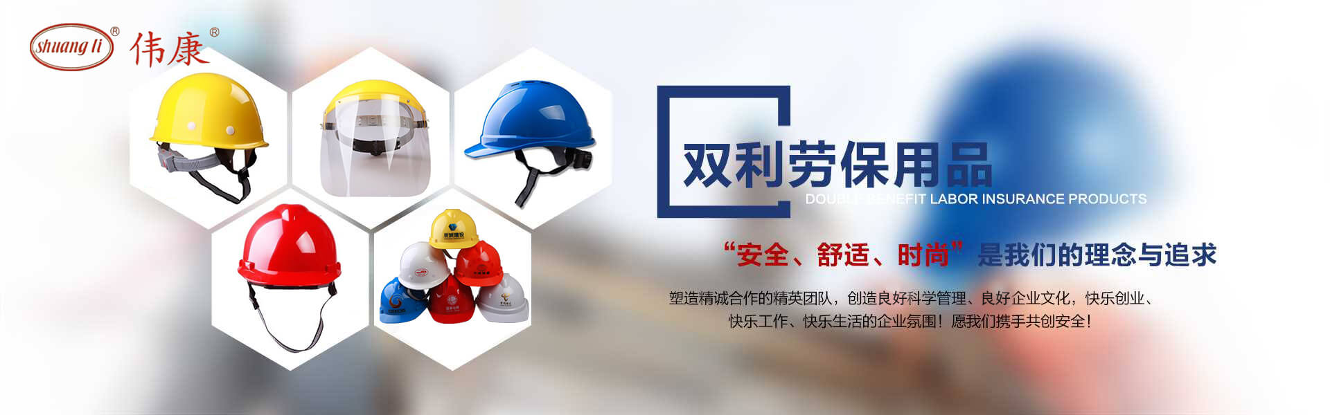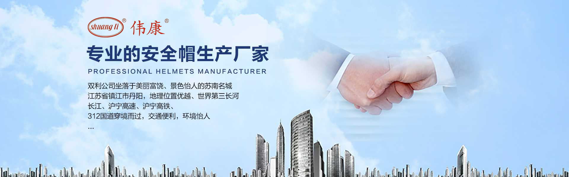 專業(yè)的安全帽生產廠家-鎮(zhèn)江市雙利勞保用品有限公司。雙利公司坐落于美麗富饒、景色怡人的蘇南名城——江蘇省鎮(zhèn)江市丹陽,地理位置優(yōu)越、世界第三長河——長江、滬寧高速、滬寧高鐵、312國道穿境而過,交通便利,環(huán)境怡人。鎮(zhèn)江市雙利勞保用品有限公司是鎮(zhèn)江市第一家創(chuàng)辦的專業(yè)生產安全帽的生產商,并申請擁有自己的品牌:shuangli牌和偉康牌,立足致力于安全帽研究,從原料入手研發(fā)出韌性更強、抗沖力更高的特點。公司根據實際運行需要建立高效、務實、有序的組織機構,實現現代化公司管理。同時公司具備專業(yè)完善的生產設備和成熟的安全帽生產工藝及先進的檢測儀器,為產品的質量奠定了堅實的基礎,各項技術指標均達到國家《GB2811-2019》《安全帽》標準。產品廣泛適用于建筑、林業(yè)、石油、石化、造船、港口、冶金等行業(yè)。 “安全、舒適、時尚”是我們的理念與追求,塑造精誠合作的精英團隊,創(chuàng)造科學管理、良好的企業(yè)文化,快樂創(chuàng)業(yè)、快樂工作、快樂生活的企業(yè)氛圍!愿我們攜手共創(chuàng)安全!
